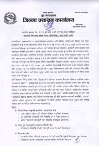 फाल्गुन २६ गते,काठमाडौँ —जिल्ला प्रशासन कार्यालय काठमाडौंले काठमाडौंका केही ठाउँमा निषेधाज्ञा जारी गरेको छ । प्रमुख जिल्ला अधिकारी ऋषिराम तिवारीले शनिबार जारी गरेको आदेशमा फागुन २५ गते आइतबारदेखि लागू हुनेगरी २ महिनासम्मका लागि केही ठाउँमा निषेधाज्ञा जारी गरेको उल्लेख छ ।