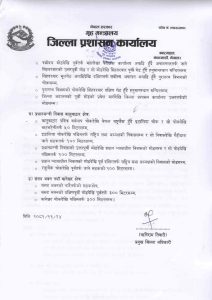 शीतल निवास (राष्ट्रपति कार्यालय) महाराजगन्ज क्षेत्र, हरित गृह (उपराष्ट्रपति कार्यालय) लैनचौर क्षेत्र, सिंहदरबार क्षेत्र, प्रधानमन्त्री निवास बालुवाटार क्षेत्र, प्रधानमन्त्री निवास बालुवाटार क्षेत्र, संसद् भवन नयाँ बानेश्वर क्षेत्रमा ५ जनाभन्दा बढी व्यक्ति भेला जम्मा भई अनशन, धर्ना, घेराउ, जुलुस, प्रदर्शन तथा सभाजस्ता विरोधका कार्यक्रम गर्न निषेध गरिएको हो ।